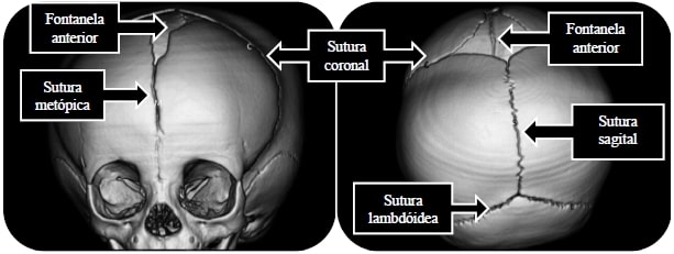A sutura coronal do recém-nascido é composta por tecido fibro-elástico, que é maleável e permite o crescimento do crânio à medida que o bebê se desenvolve e aumenta o seu volume cerebral. Cada sutura craniana (sagital, metópica, coronais, lambdóideas) possui um tempo estimado em que a sua fusão se completa. A sutura coronal demora para se fundir, completando sua fusão na segunda década de vida.
